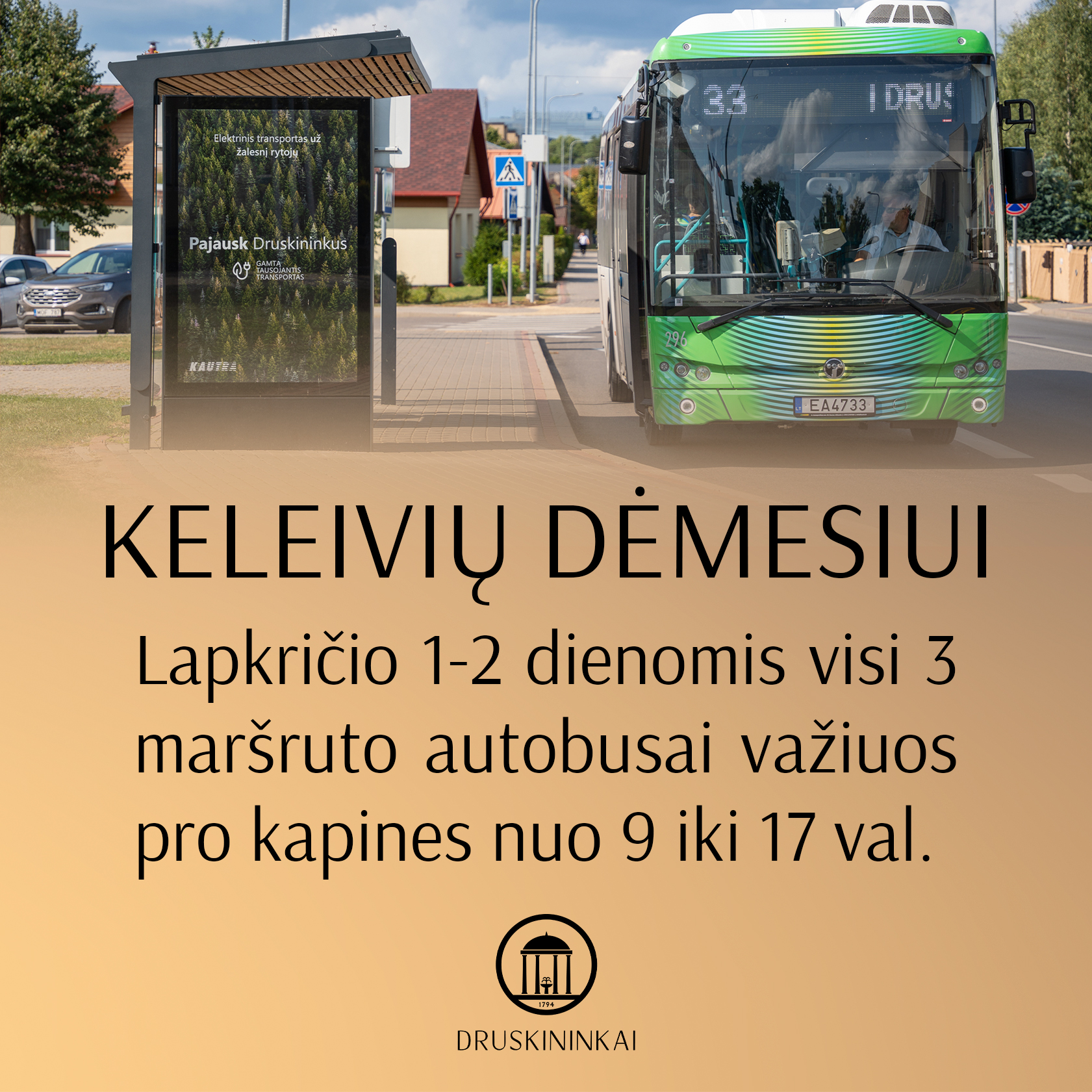 Lapkričio 1–2 dienomis (šeštadienį ir sekmadienį) 3 maršruto autobusai nuo 9.00 iki 17.00 kursuos pro kapines.