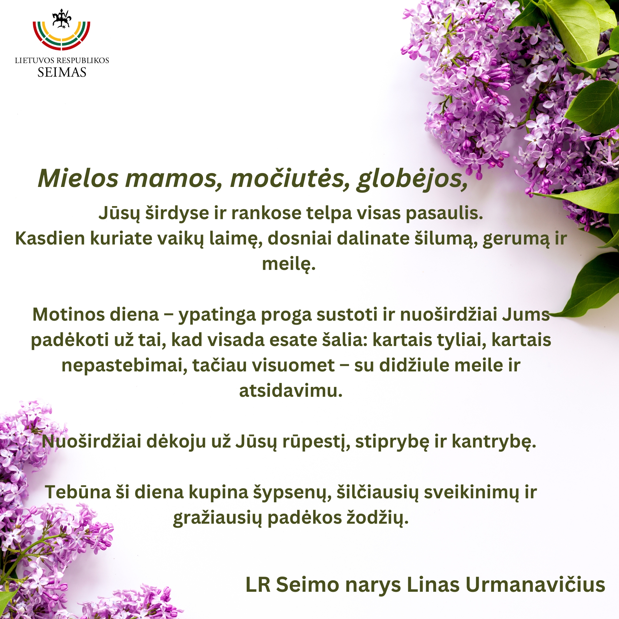 LR Seimo nario Lino Urmanavičiaus sveikinimas Motinos dienos proga