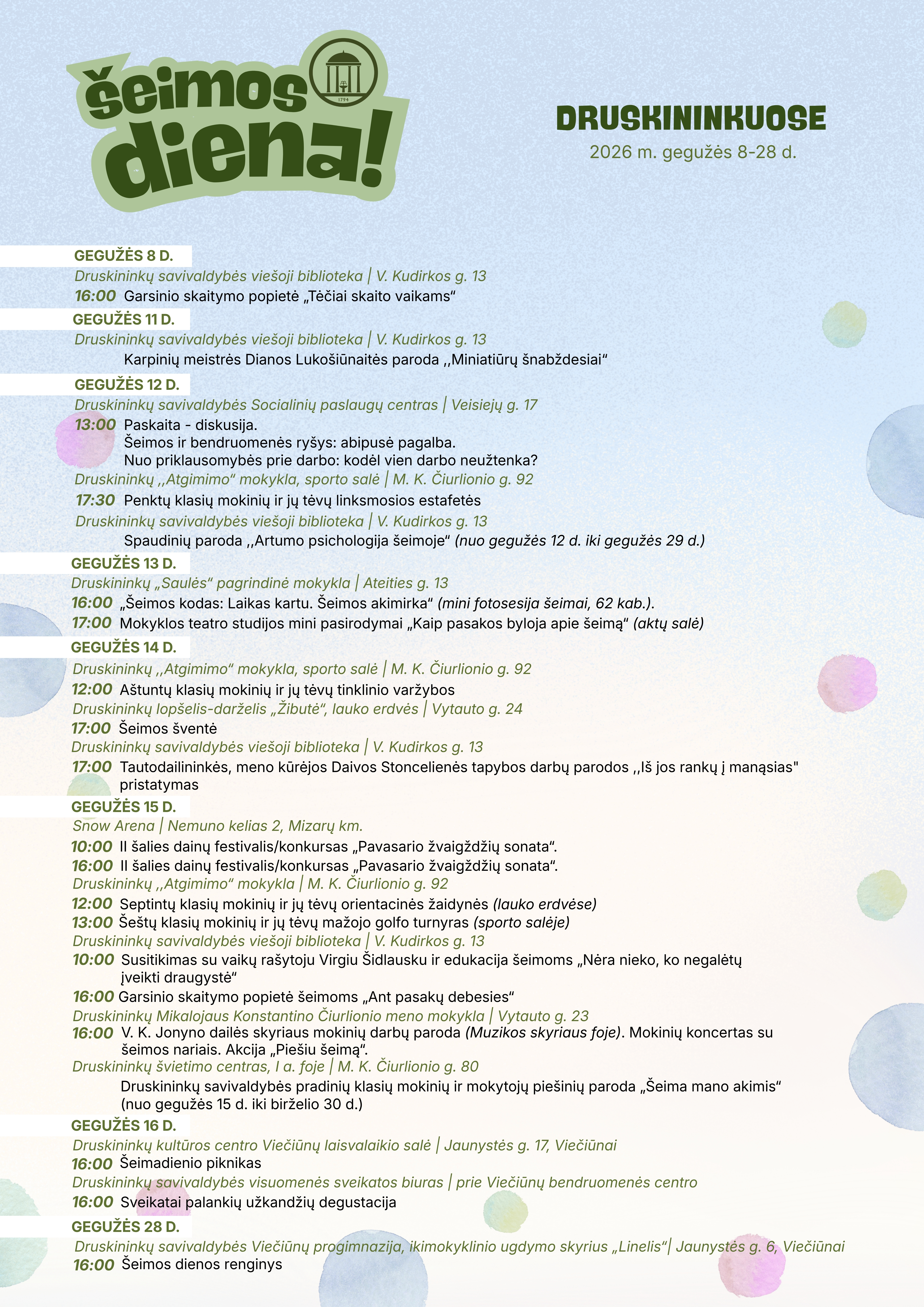 Prisijunk prie Šeimos dienų Druskininkuose ir kartu patirk smagių, įkvepiančių veiklų visai šeimai!