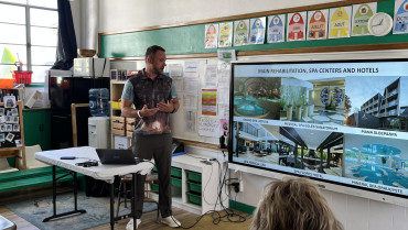 Ypatingai šiltai svečius sutiko San Fransisko lituanistinės mokyklos „Genys“ bendruomenė. Kavos ir karšto šokolado popietėje vyko neformalus bendravimas, vėliau koplyčioje vyko Druskininkų pristatymas bei interaktyvus žaidimas apie kurortą, įtraukęs vaikus ir suaugusius.