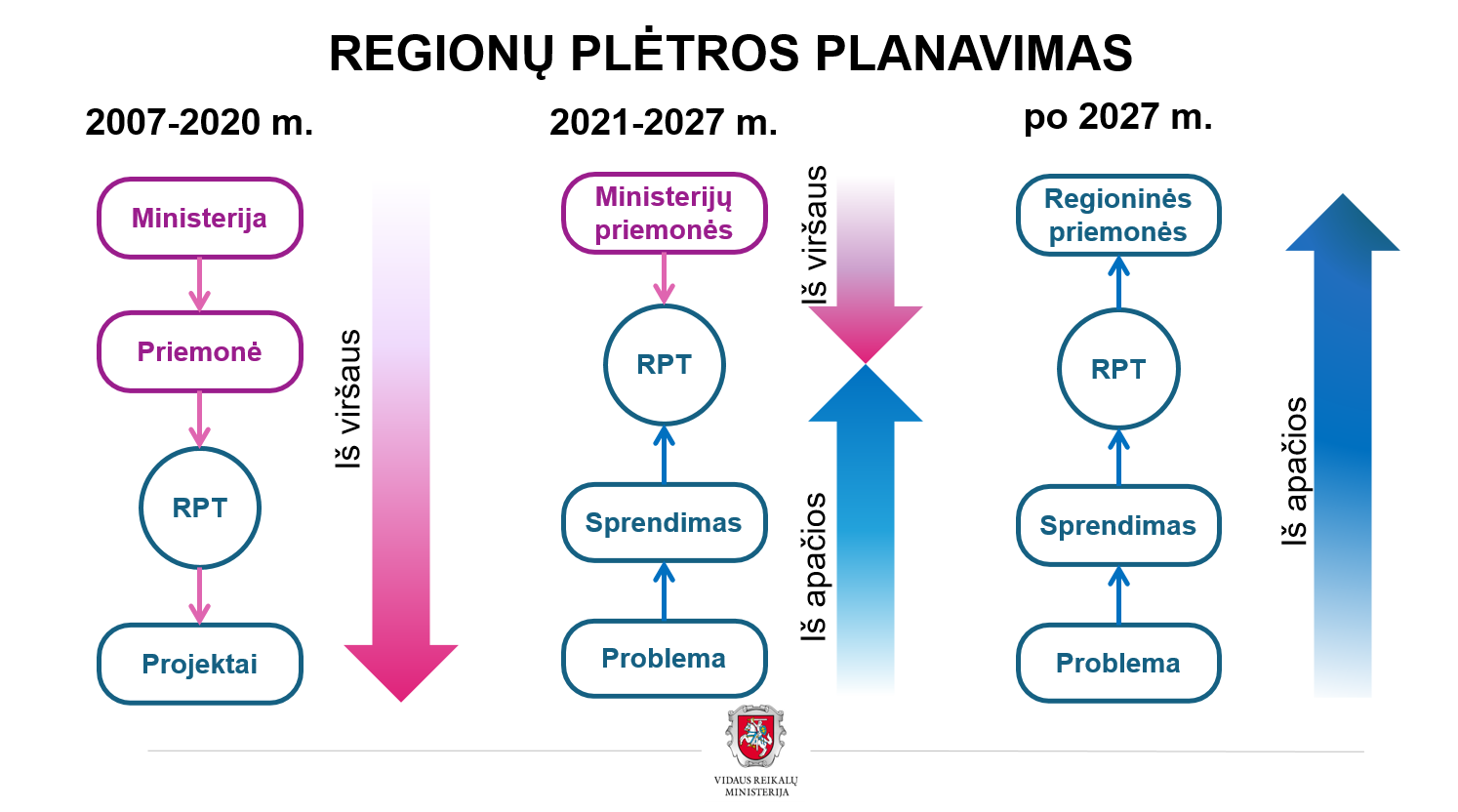 Vidaus reikalų ministerijos atstovai apžvelgė Regionų plėtros programos įgyvendinimą ir pabrėžė siekį, kad regionai ir savivaldybės jau pradiniame etape, dar iki derybų su Europos Komisija, būtų įtrauktos į investicijų planavimą ir galėtų iš anksto planuoti projektus bei laiku pradėti jų įgyvendinimą.